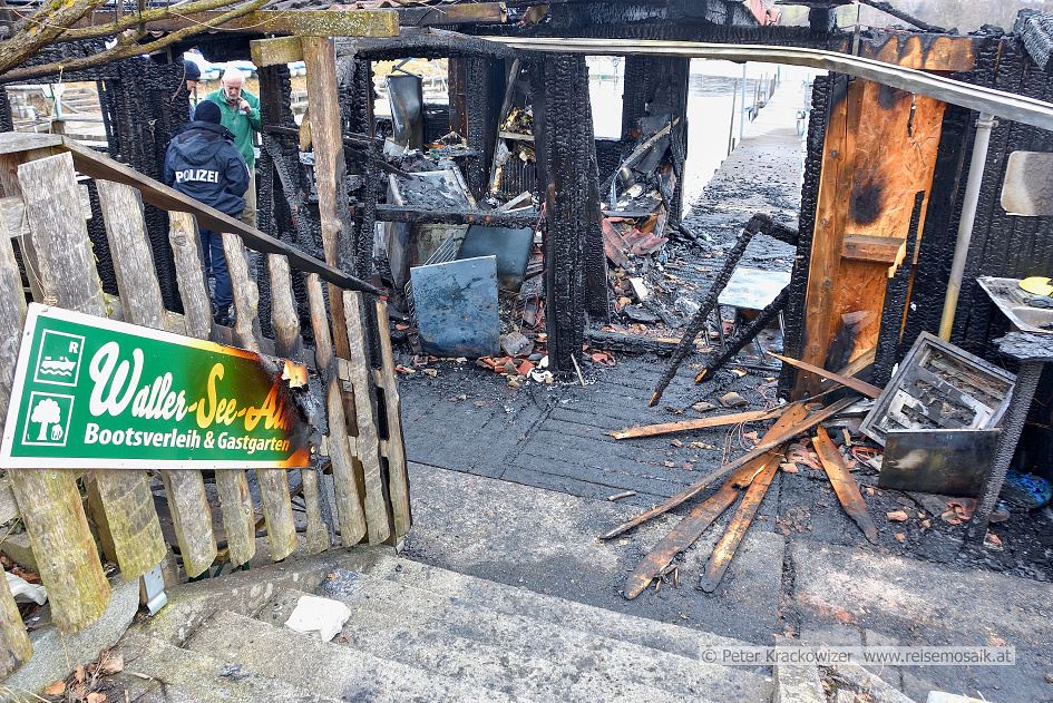 - Die WallerSeeAlm in der Wallersee-Ostbucht in Neumarkt am Wallersee brannte kurz nach Mitternacht am Samstag, den 14. Februar 2026 ab.