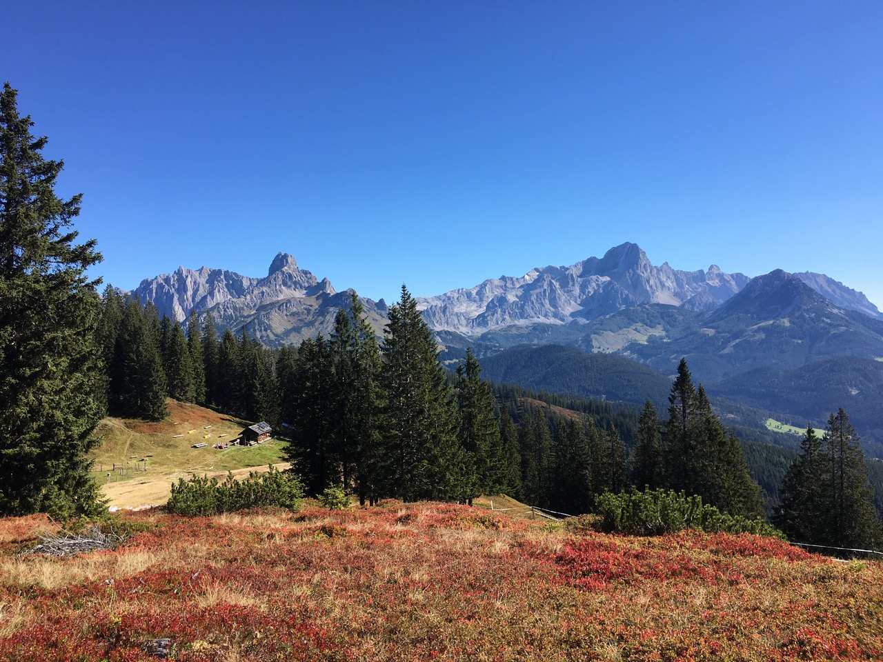 - Gerzkopf, Ostausblick: Bildmitte die Bischofsmützen, rechts das Dachsteinmassiv;