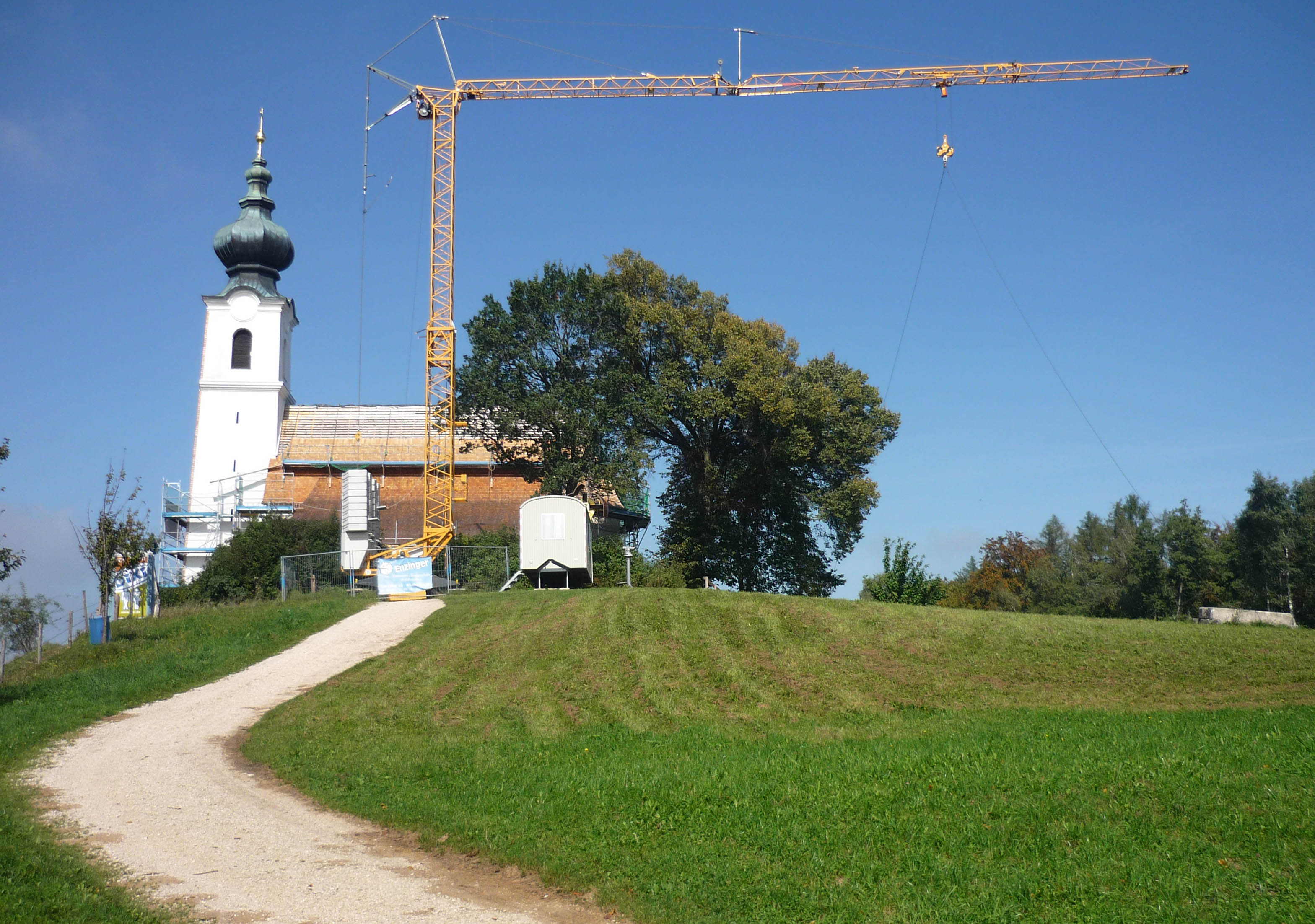 - Ansicht der Johanniskirche vom Berggasthof während der Renovierung im Jahr 2009