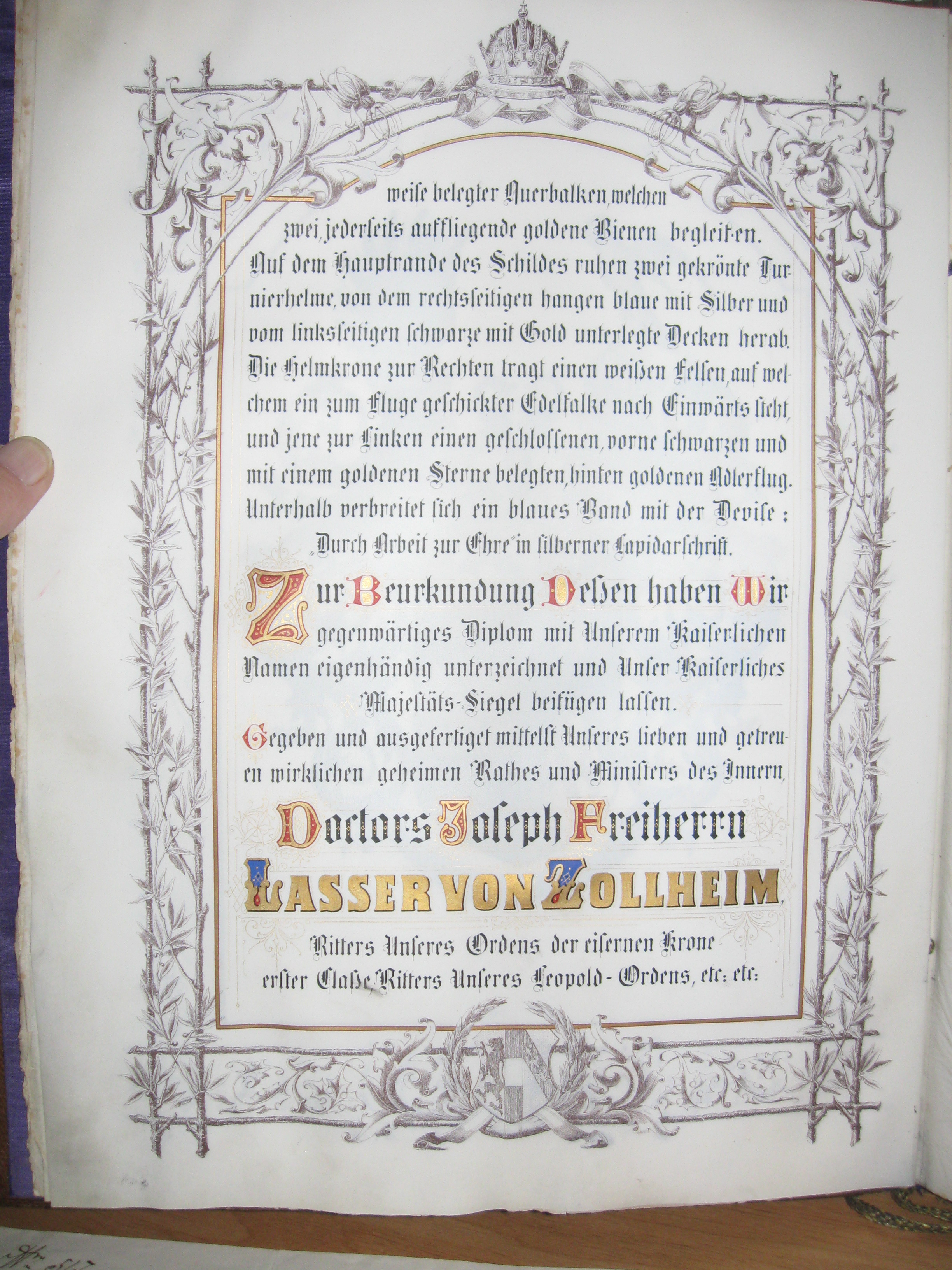 - Ritterstandsdiplom für Maximilian Weiss, unterschrieben von Josef Freiherr Lasser von Zollheim - Seite 5