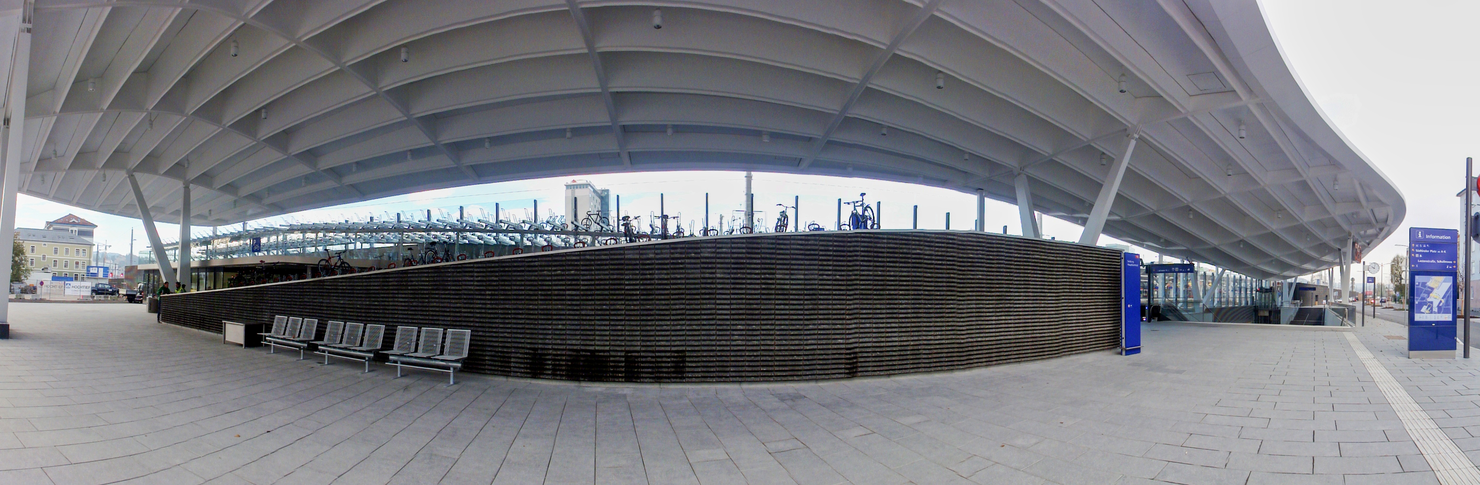 12:44, 13. Nov. 2014Vorschaubild der Version vom 12:44, 13. Nov. 20144.912 × 1.612 (3,68 MB)Franz Fuchs (Diskussion | Beiträge){{Bildbeschreibung2 |Beschreibung = Monumental und dennoch zweckmäßig wirkt das Dach über der neuen Fahrradgarage in Schallmoos |Quelle = eigenes Foto |Fotograf = Franz Fuchs |Erstelldatum = 11.11.2014 |Lizenzkommentar = }}