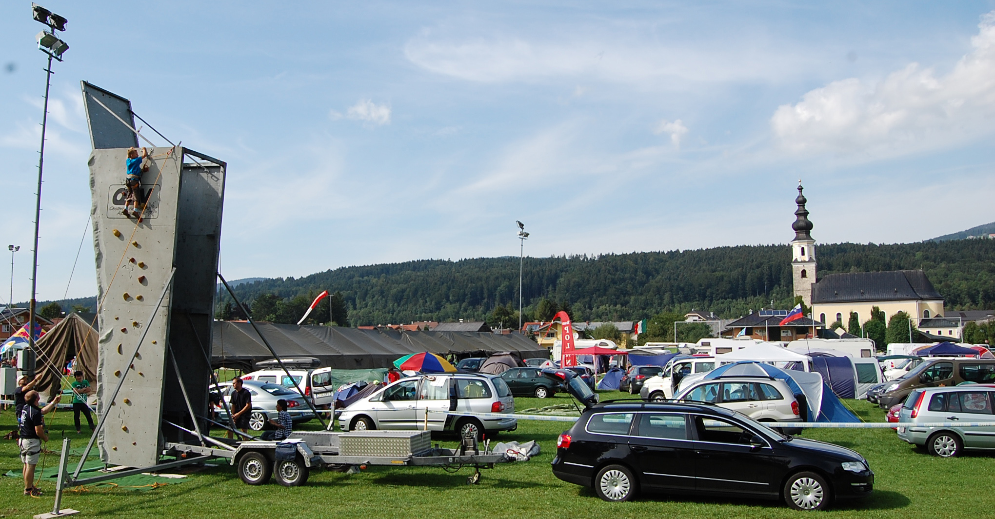 der Weltcuptross mit vielen Fahrzeugen und Zelten machte in Thalgau Halt