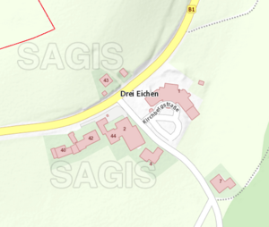 Der Ortsteil erhält seinen Namen von der Taverne zu Drei Eichen (heute Landhotel Gasthof Drei Eichen).