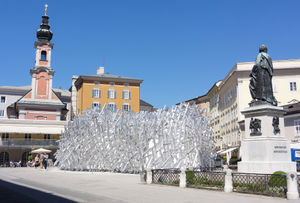 - Mozartplatz in der Stadt Salzburg: Das Pavillon-Projekt White Noise überzeugte durch seine identitätsstiftende Form und zeichenhafte Architektur.