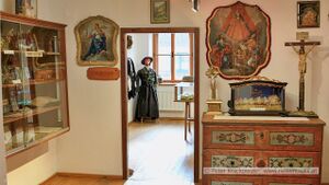 Verschiedene religiöse Gegenstände, u. a. links ein Fatschenkindl.