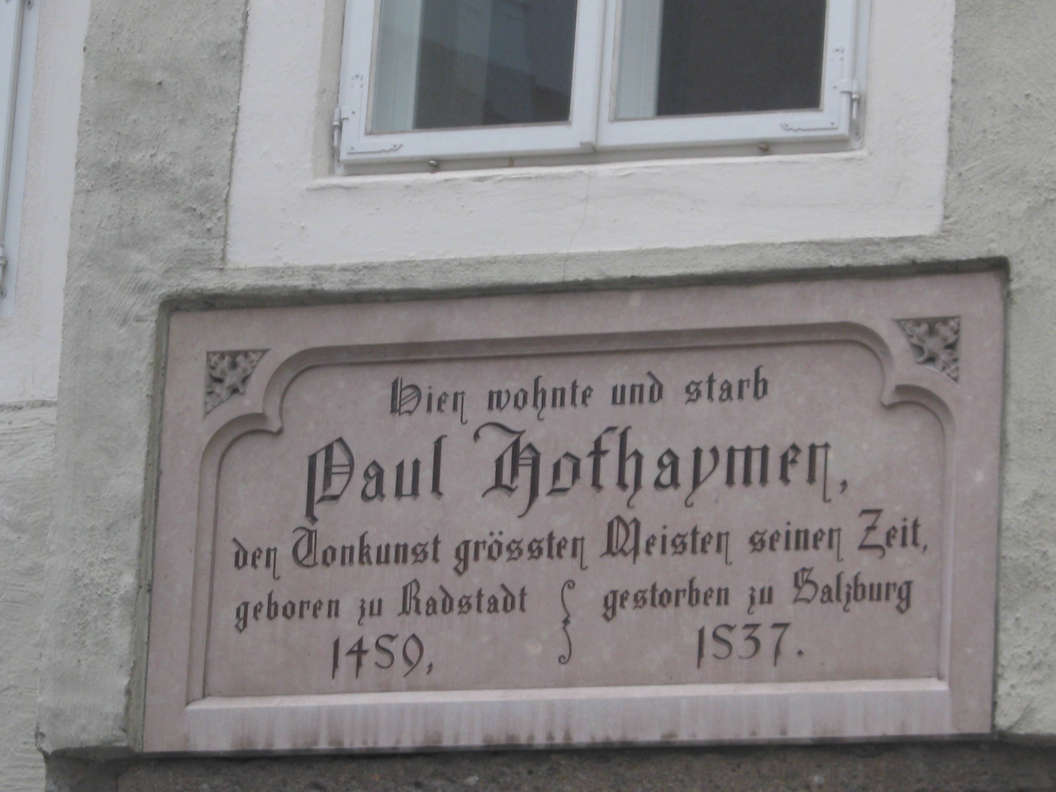 | 20:46, 12. Mär. 2010 | Paul Hofhaymer.JPG (Datei) | 1,29 MB | {{Bildbeschreibung2 |Beschreibung = Gedenktafel für Paul Hofhaymer |Quelle = Andrea Loidl |Fotograf = Andrea Loidl |Erstelldatum = 10.03. 2010 |Lizenzkommentar = }} | 1 | |