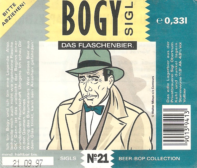 | 22:47, 31. Jul. 2016 | Bogy Sigl.jpg (Datei) | 234 KB | {{Bildbeschreibung2 |Beschreibung = SIGLs Beer-Bop Collection |Quelle = Trumer Privatbrauerei |Fotograf = Walter Minus |Erstelldatum = |Lizenzkommentar = siehe unten }} | 1 | |