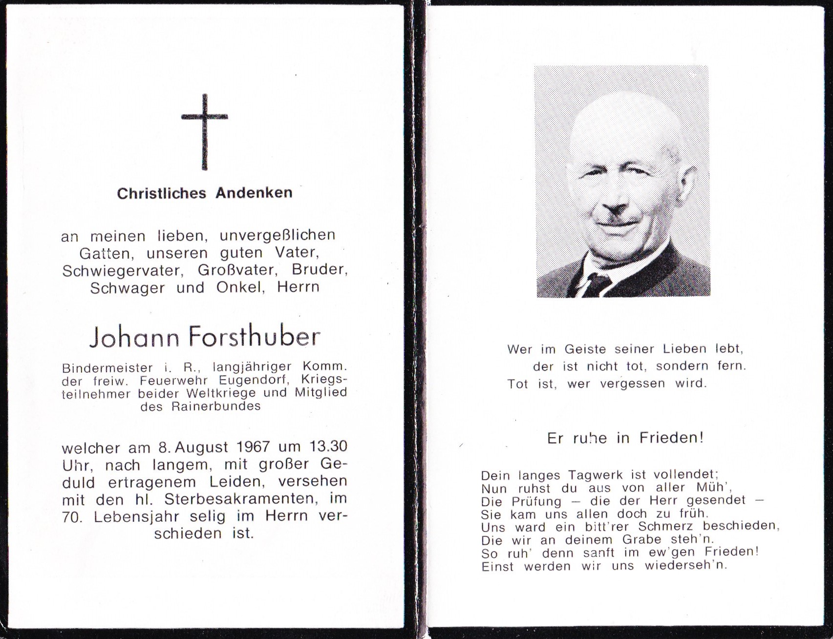 | 17:29, 14. Feb. 2023 | Johann Forsthuber.jpg (Datei) | 417 KB | {{Bildbeschreibung2 |Beschreibung = Trauerbild Johann Forsthuber |Quelle = Privat |Fotograf = Benutzer:Klemens Pötzelsberger |Erstelldatum = 14.02.2023 |Lizenzkommentar = }} | 1 | |