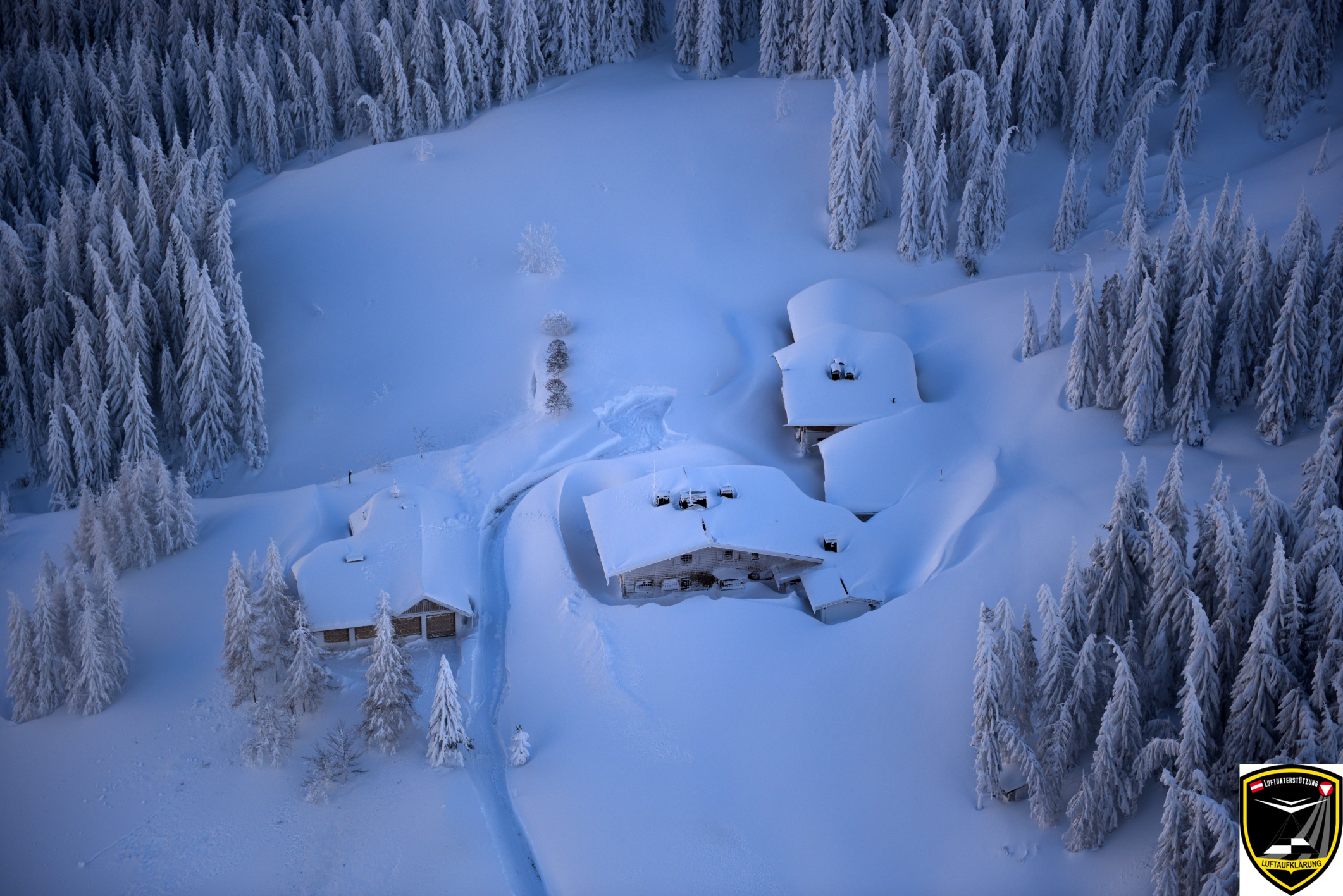 {{Bildbeschreibung2 |Beschreibung = Jänner 2019: Befliegung eingeschneite Gehöftgruppe Dientner Sattel in der Früh am 14. Jänner 2019 |Quelle = Salzburger Landeskorrespondenz vom [https://service.salzburg.gv.at/lkorrj/Index?cmd=detail_… |
