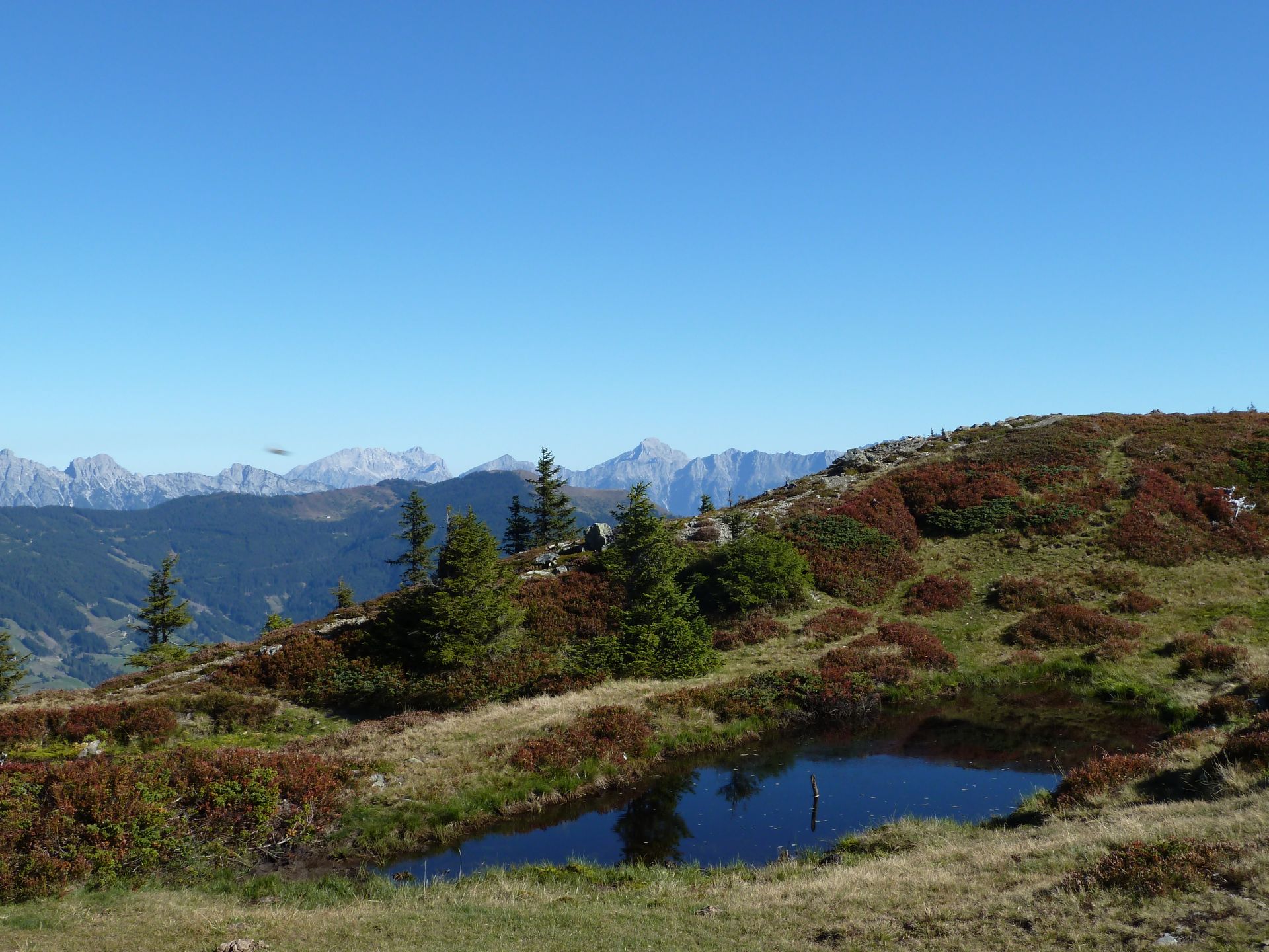 Hochmoortümpel bei der Kesselscharte. Blickrichtung Glemmtal.