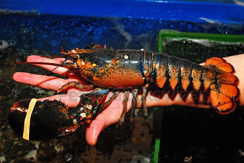 - Walter Grüll Fischhandel in Grödig: Hummer und Austern leben gemeinsam in einem Wasserbecken, hier zeigt uns Patrick Grüll einen Hummer