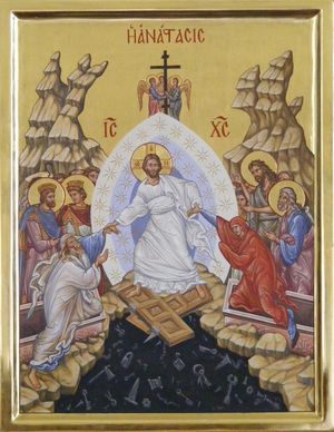 [[Datei:Anastasis.JPG|thumb|Auferstehungs-Ikone (siehe [[Peter Lammer#Peter Lammer und Zell am See|Peter Lammer und Zell am See]])]] | |||