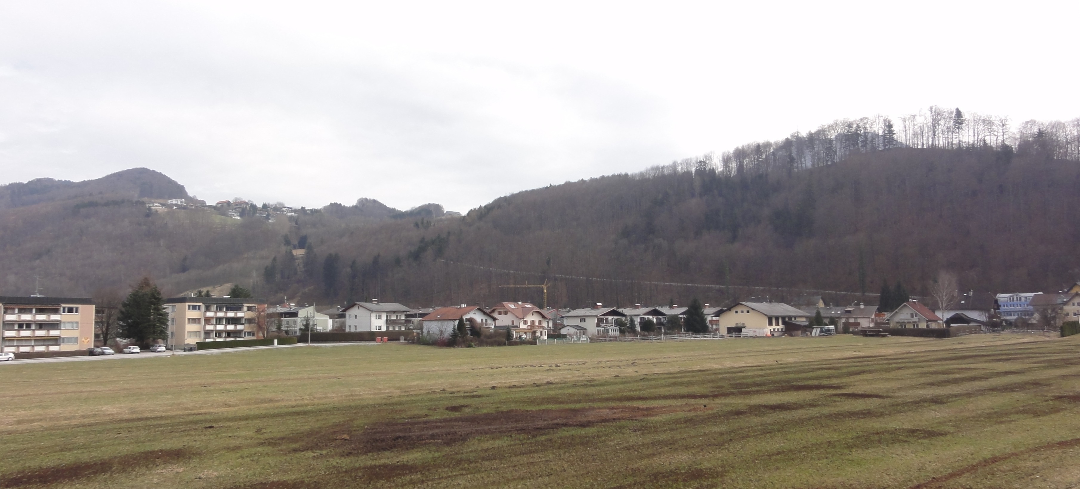 Langwiedansicht mit Heuberg, am Heuberghang entlang ist durch den Wald hindurch der Verlauf des Drei-Eichen-Weges sichbar.