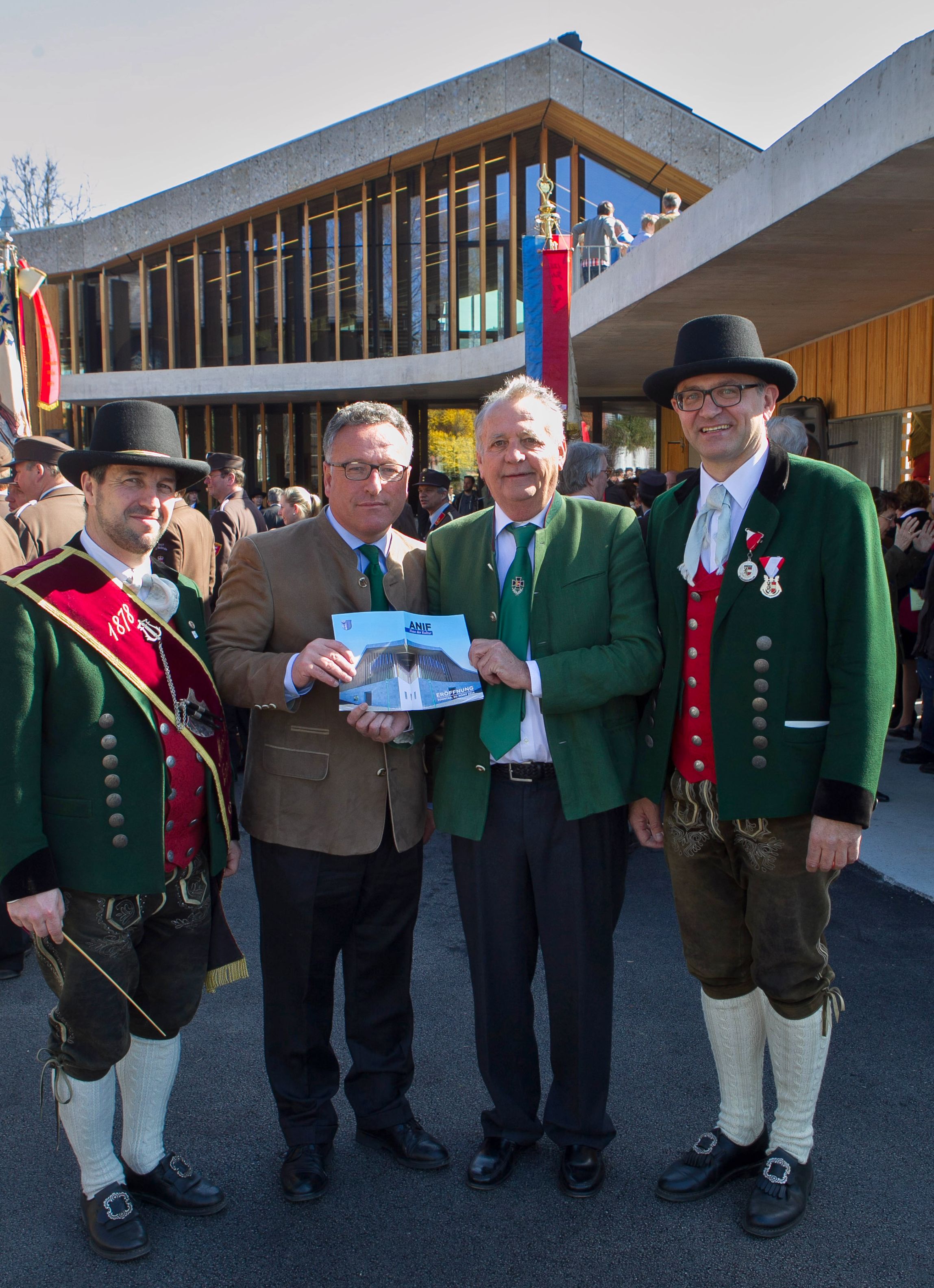 - Eröffnung des Hauses der Kultur in Anif (von links): Rudolf Egner (Kapellmeister), Landesrat Dr. Heinrich Schellhorn, Dr. Hans Krüger, Bürgermeister der Gemeinde Anif, Paul Hagenauer (Obmann)]]