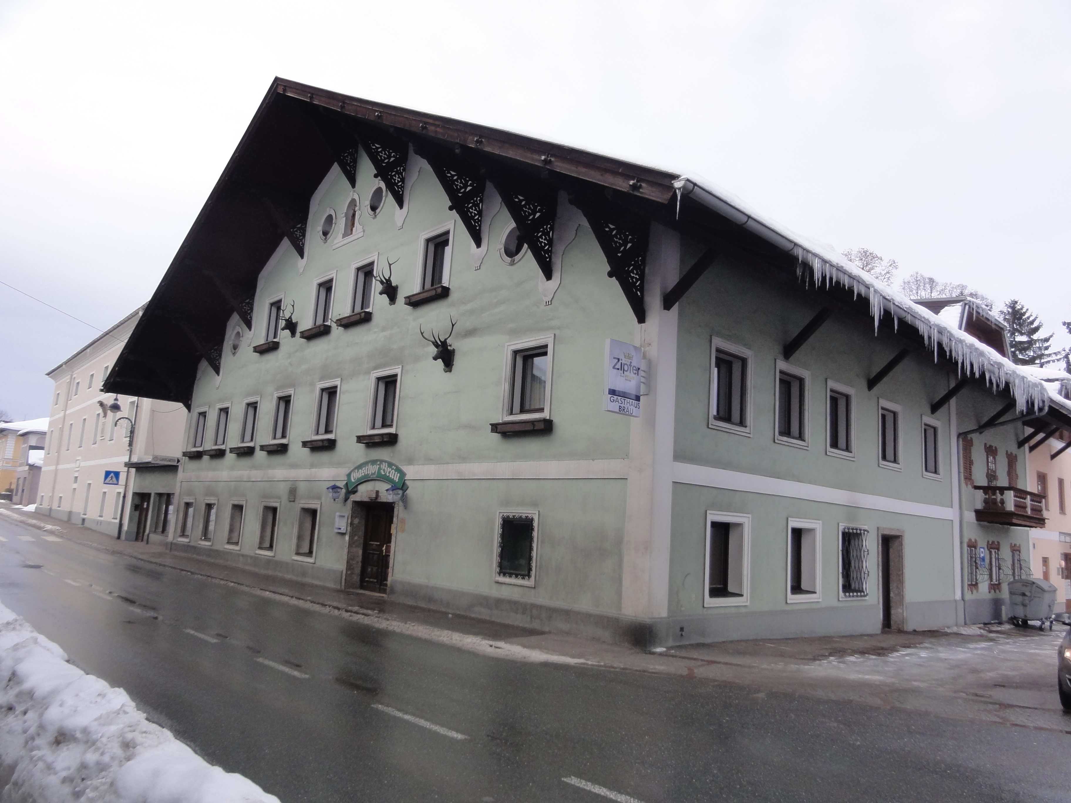 das traditionsreiche Caspar-Moser-Bräu, später Gasthof Bräu in Henndorf am Wallersee an der Wiener Straße (B 1), dz. (Jänner 2011) geschlossen