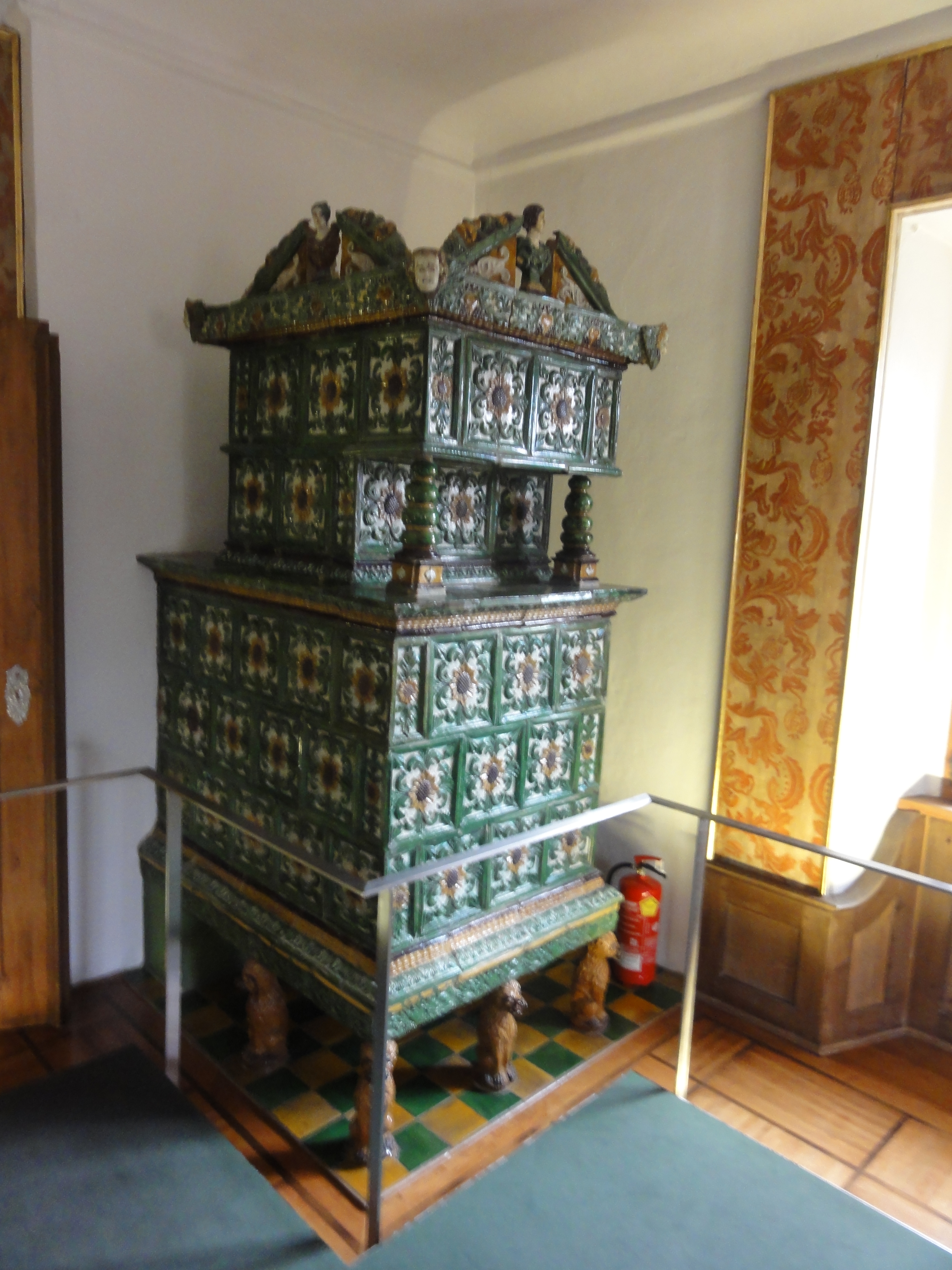 Datei:Prachtvoller Kachelofen im Obergeschoß des Museums.JPG