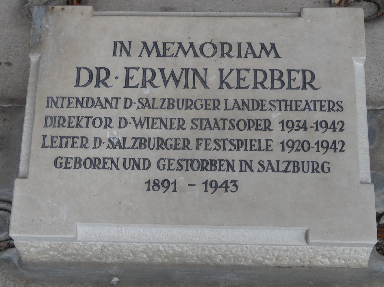 | 23:58, 6. Mär. 2015 | Grab Erwin Kerber'.jpg (Datei) | 415 KB | {{Bildbeschreibung2|Beschreibung = Grabstein von Erwin Kerber (* 30. Dezember 1891; † 24. Februar 1943); auf dem Salzburger Kommunalfriedhof |Quelle = Karl Irresberger |Fotograf = [[Benutzer:Karl… | 1 | |