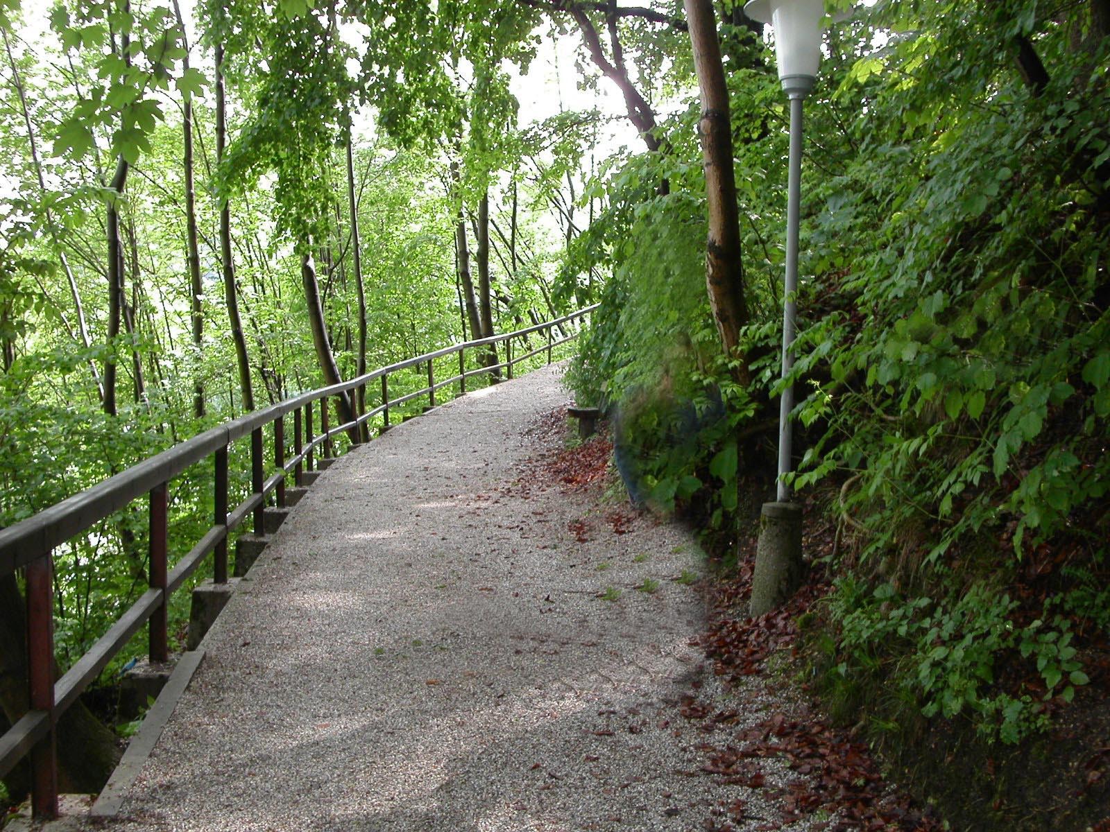 - Doblerweg in Richtung Schweizerhäusl; wegen der steilen Hanglage musste hier der Weg mit Betonpfeilern abgestützt werden.