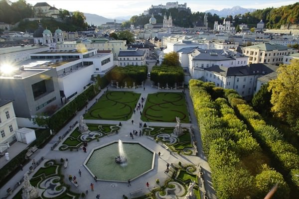 - Luftbildaufnahme vom Mirabellgarten in der Stadt Salzburg