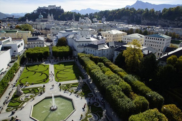 - Luftbildaufnahme vom Mirabellgarten in der Stadt Salzburg