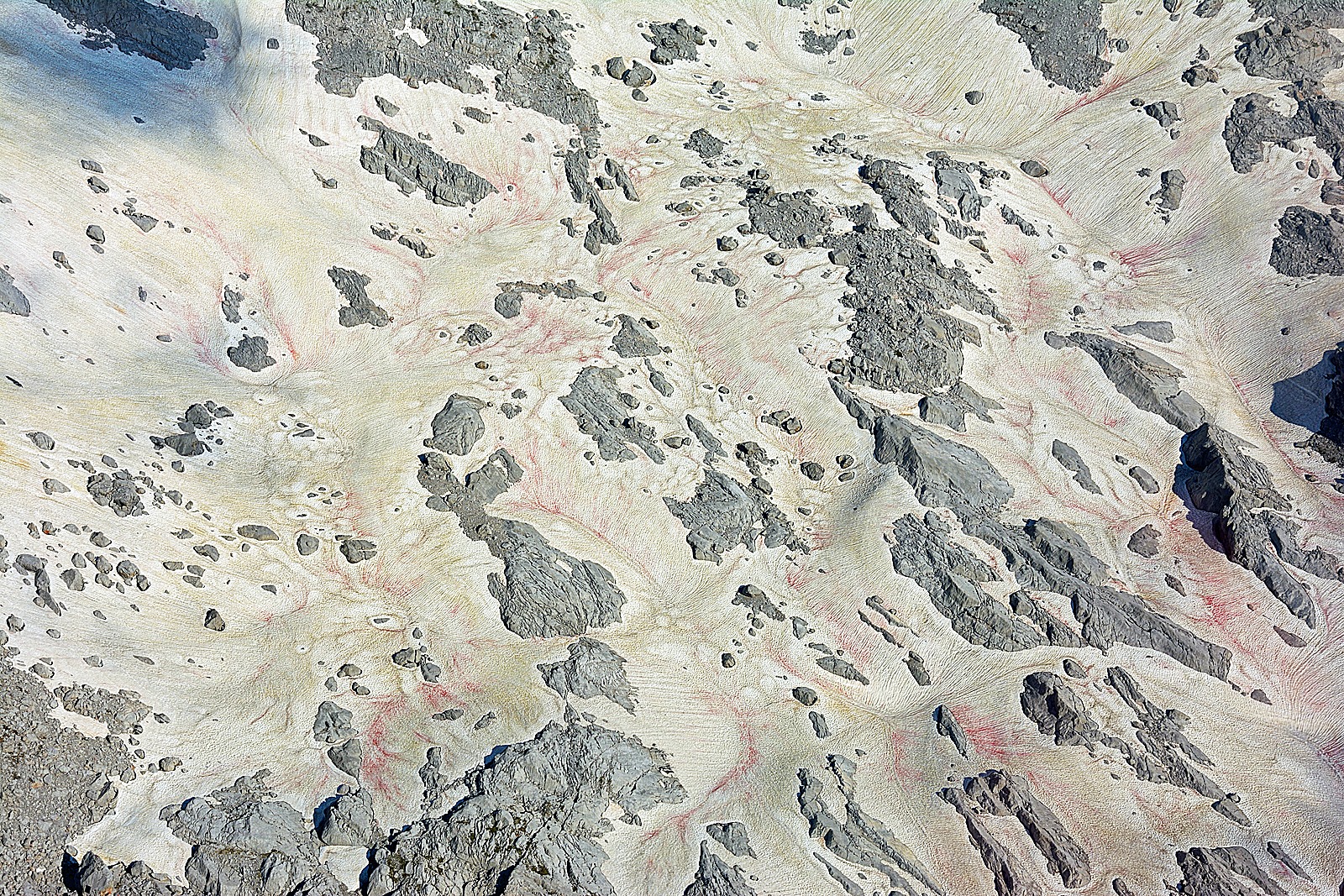 - Blutschnee auf dem Hochplateau des Steinernen Meeres unweit des Ingolstädter Hauses, ca. 2 100 Meter Seehöhe.