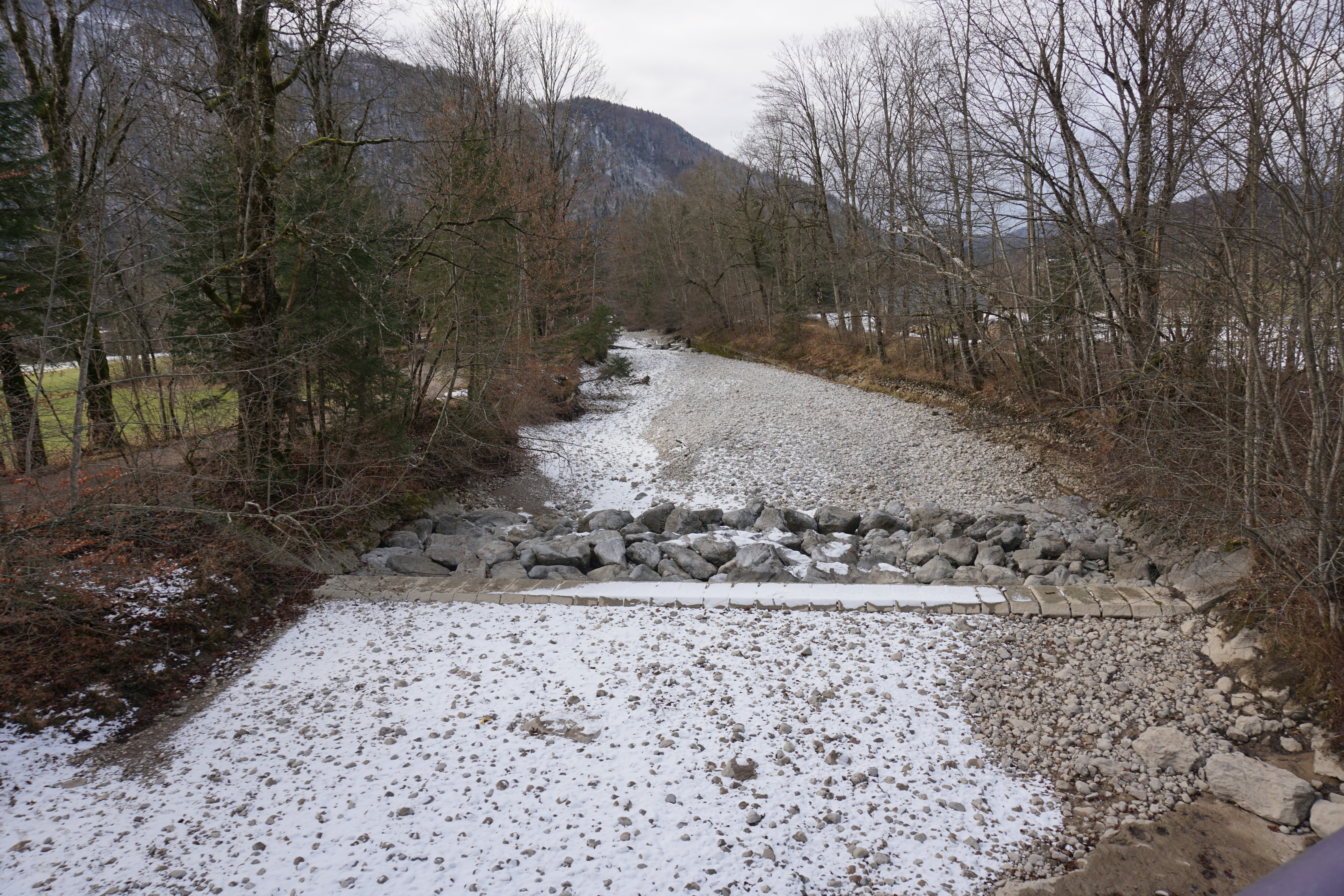 - der wintertrockene Tauglbach in Hintersee