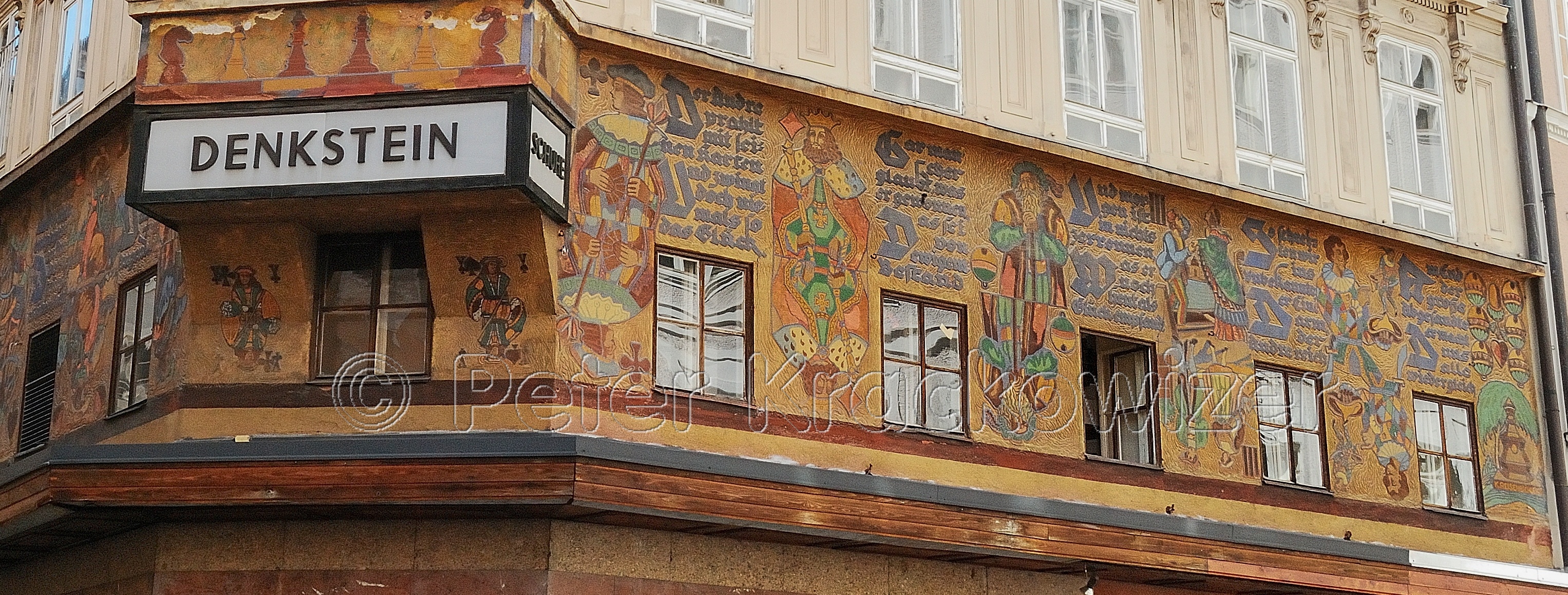 - Linzer Gasse 1 (Denkstein-Haus) in der rechtsufrigen Altstadt der Stadt Salzburg. Das Sgraffito des Salzburger Malers Karl Reisenbichler an der Seite der Linzer Gasse.