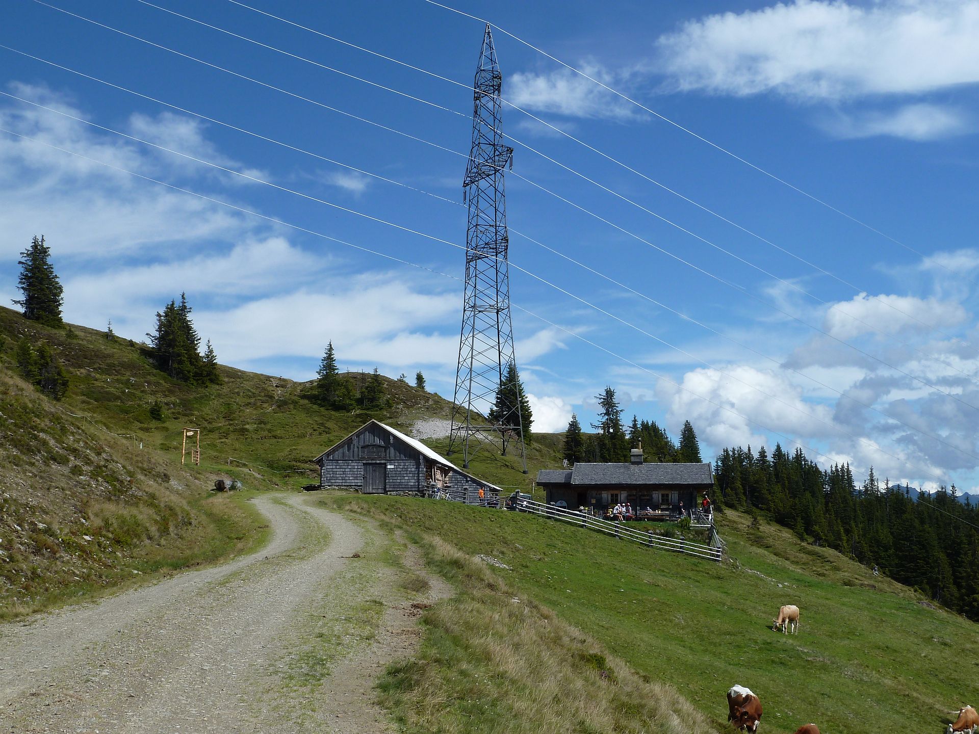 Die Almgebäude der Sonnbergalm, von der Westseite aufgenommen.