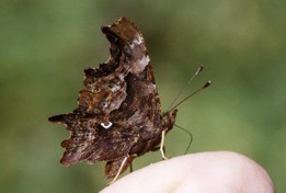 Der C-Falter sieht auf den ersten Blick dem Kleinen Fuchs recht ähnlich. Seine Flügel sind aber zackiger, die Färbung ist weniger bunt, und auf der Unterseite der Hinterflügel trägt er ein deutliches weißes "c". Die Raupe des C-Falters sieht wie ein Häufchen Vogelkot aus und ist daher gut getarnt. Sie lebt vor allem an Ulmen, aber auch an Ribisel, Hopfen und Brennnesseln.