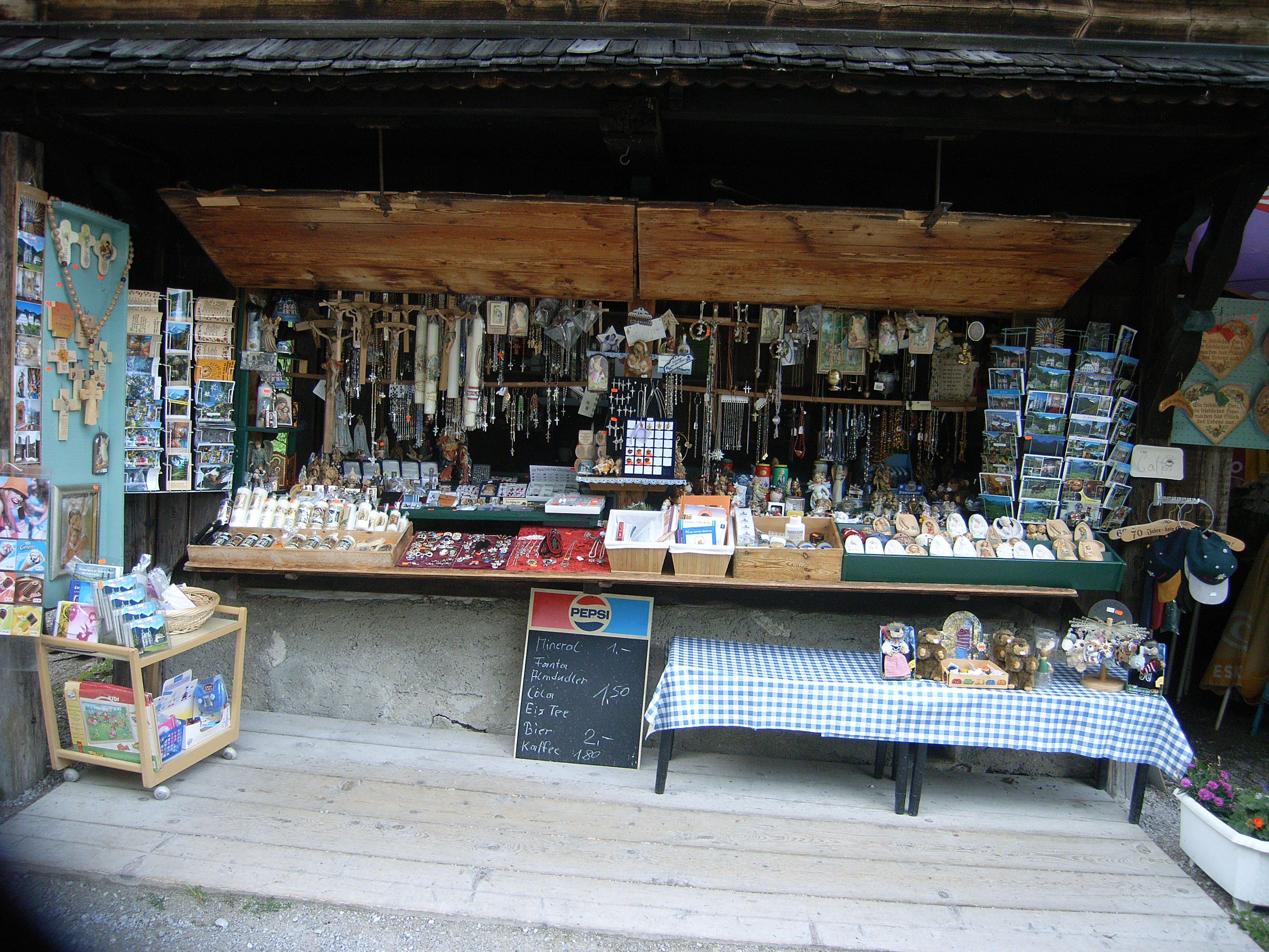 | aktuell | 13:46, 16. Aug. 2009 | 3.264 × 2.448 (1,53 MB) | Franz Fuchs (Diskussion | Beiträge) | {{Bildbeschreibung2 |Beschreibung = Andenkenkiosk |Quelle = |Fotograf = Franz Fuchs |Erstelldatum = Aug. 2009 |Lizenzkommentar = }} |