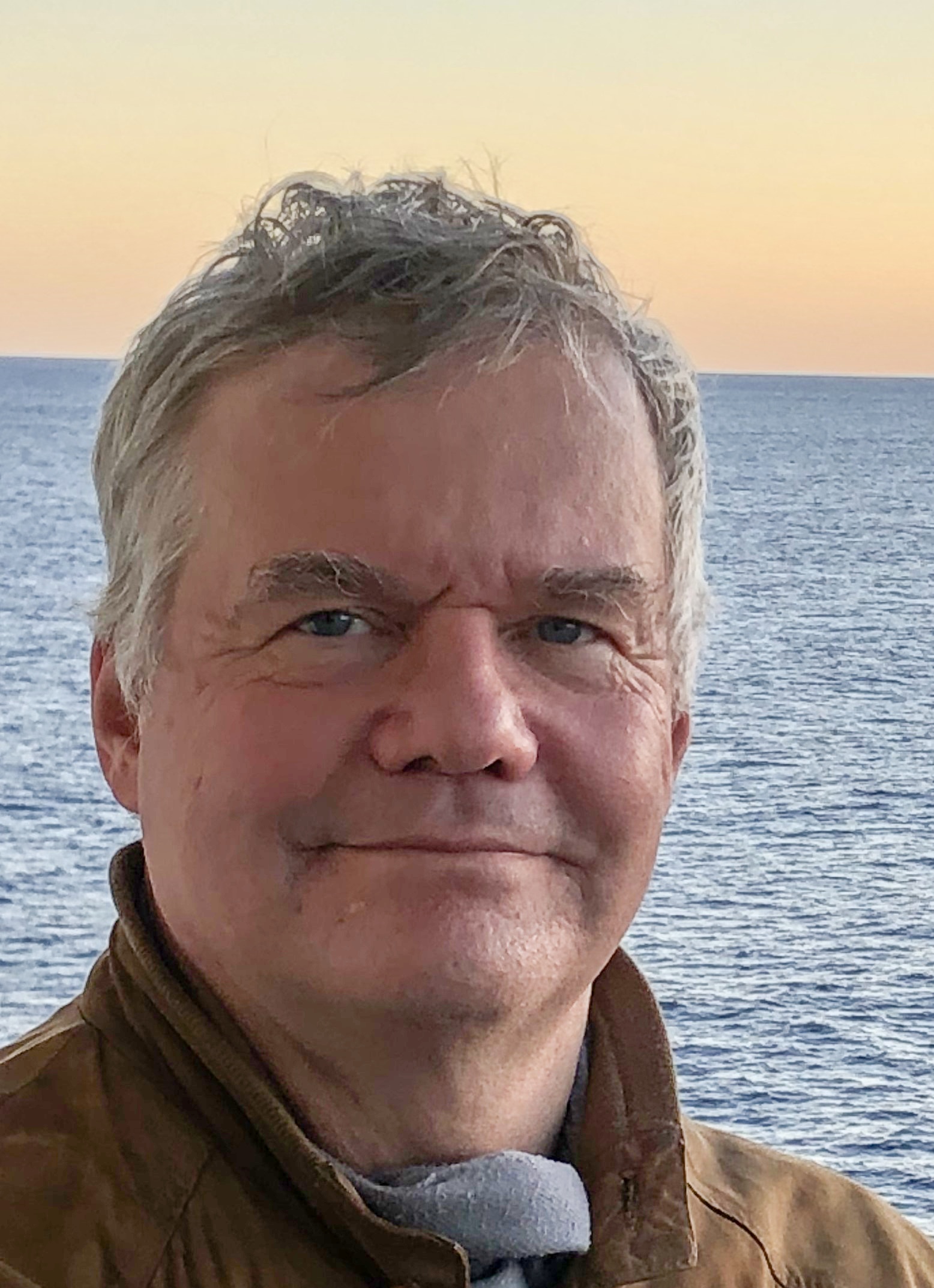 - Karl Irresberger; im Hintergrund der vom Abendrot beschienene Atlantik bei Teneriffa