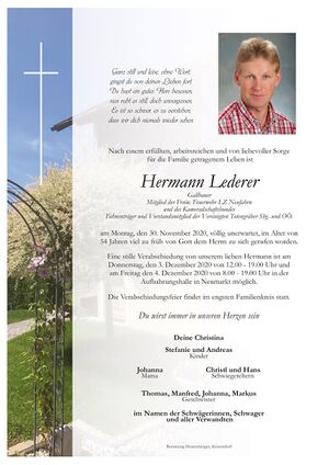 Hermann Lederer (* 1966; † 30. November 2020) vulgo Gallbauer, war Bio-Bauer in Thalham, Schulwart der HAK.HAS und Totengräber in Neumarkt am Wallersee.