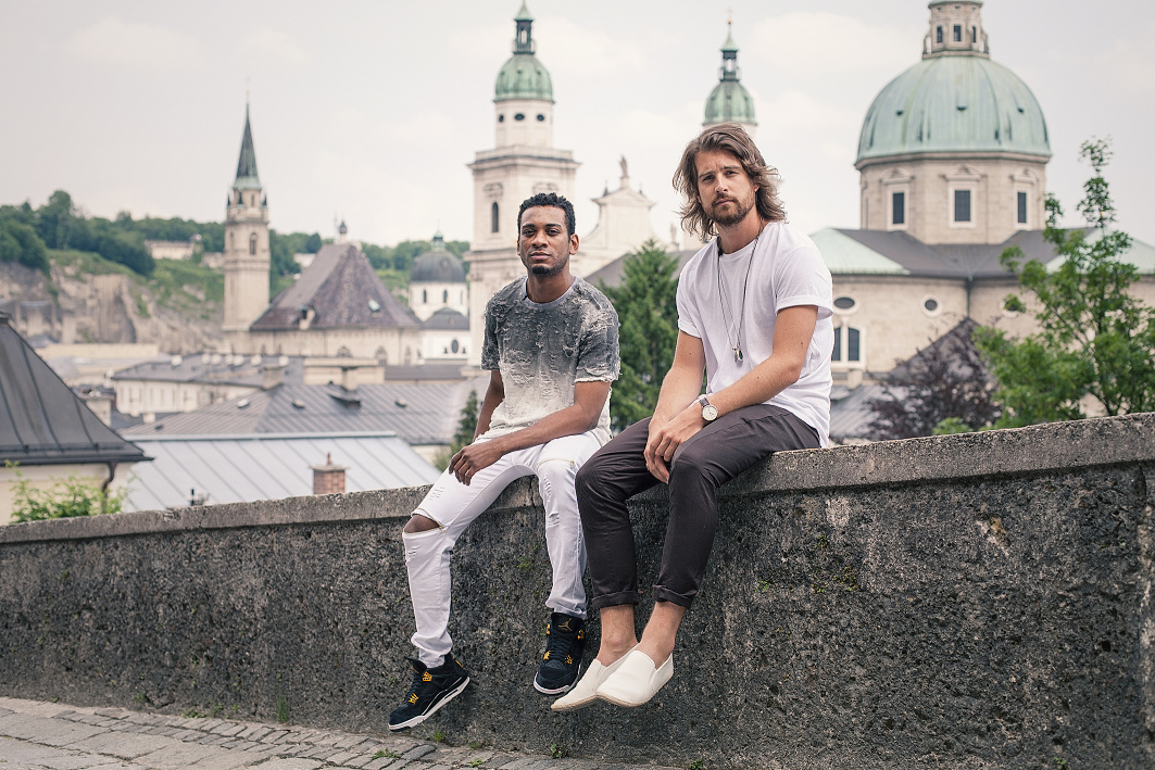- The Makemakes in Hollywood: Auf den Spuren von "The Sound of Music": Dominic und Joshua oberhalb der Benediktinererzabtei St. Peter in der Stadt Salzburg.