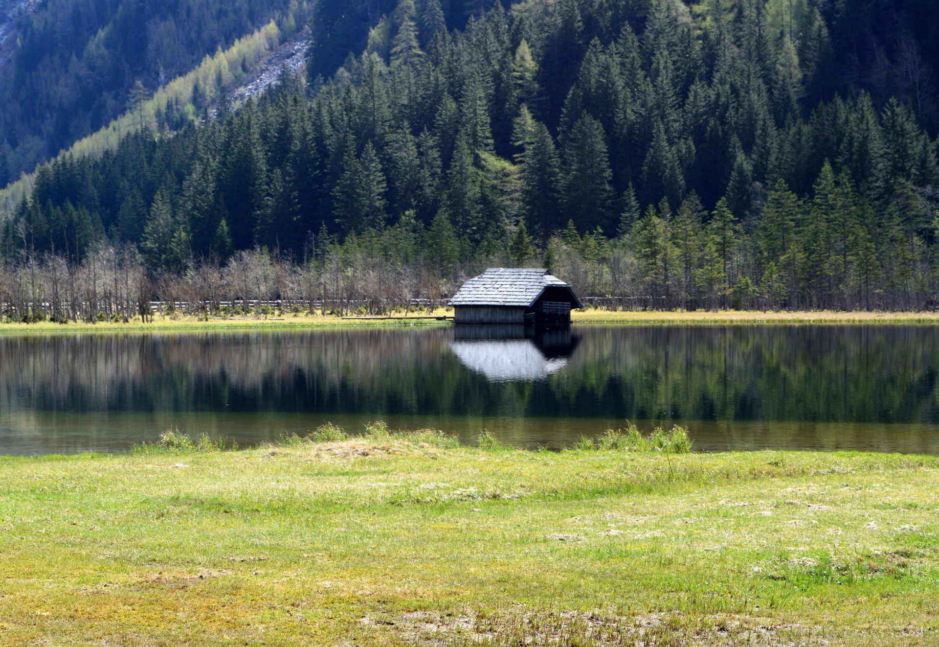 Stappitzer See mit Vogelbeobachtungsstation.