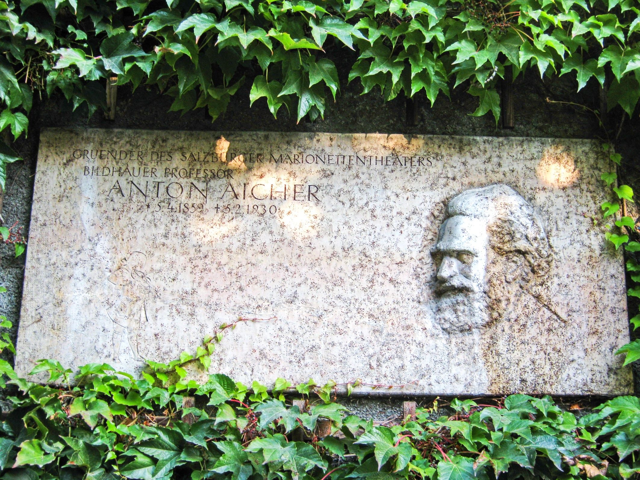 - Denkmal für Anton Aicher (* 1859, † 1930), im Mirabellgarten