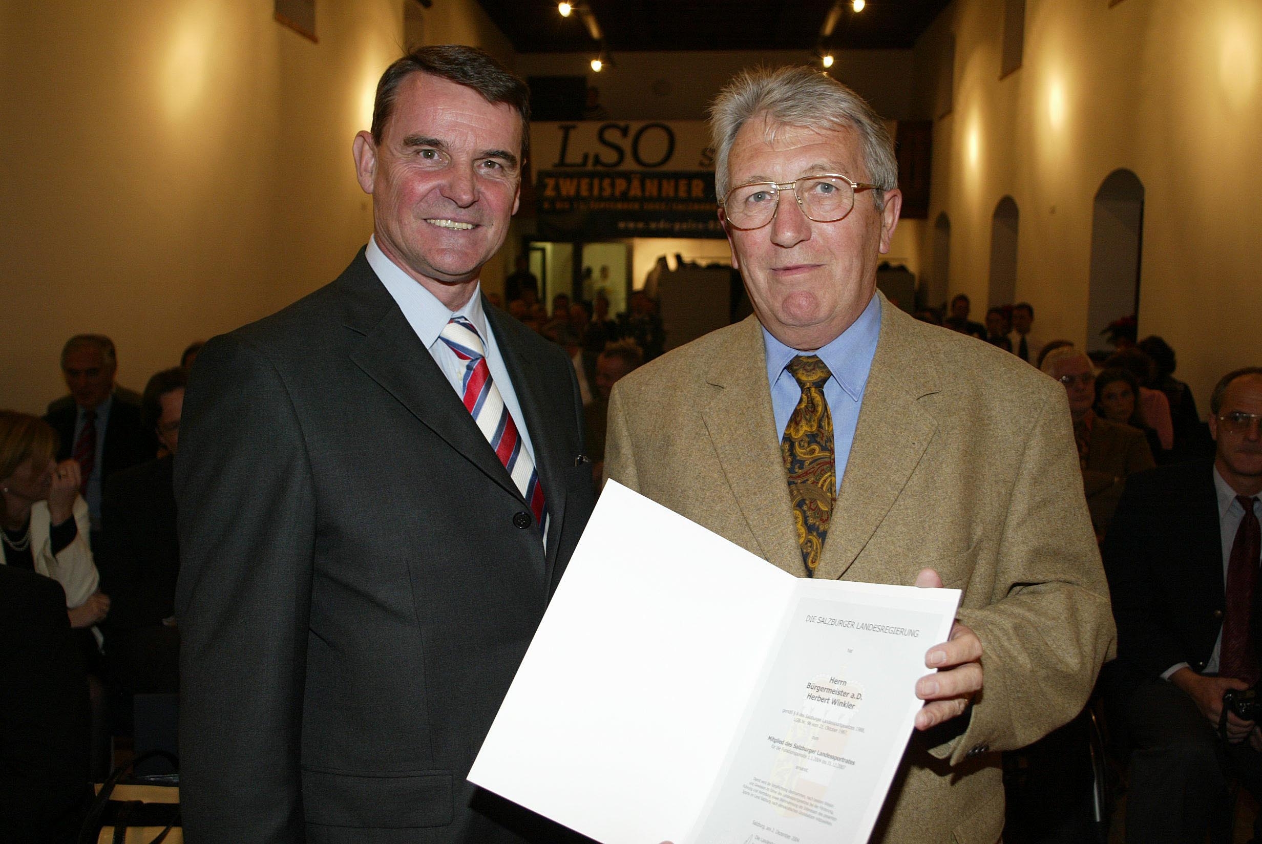 - Sportehrungsfestakt im Schloss Rif, zum Mitglied des Salzburger Landesportrates für die Funktionsperiode 2004 bis 2007, Überreichung durch LHstv. Othmar Raus an Herbert Winkler